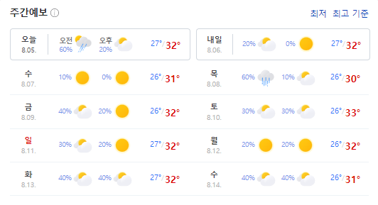 날씨는 계속 더울 예정이라 다들 더위 조심하세야 할 거 같아요